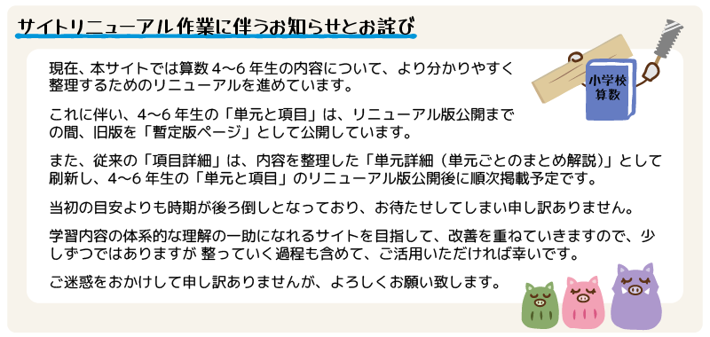 よって解説や補足には大幅な修正が入る予定なので、「項目詳細」は高学年分はリニューアル完了まで公開中断としました。